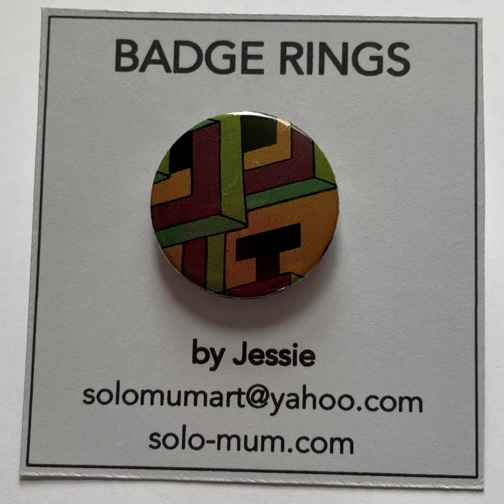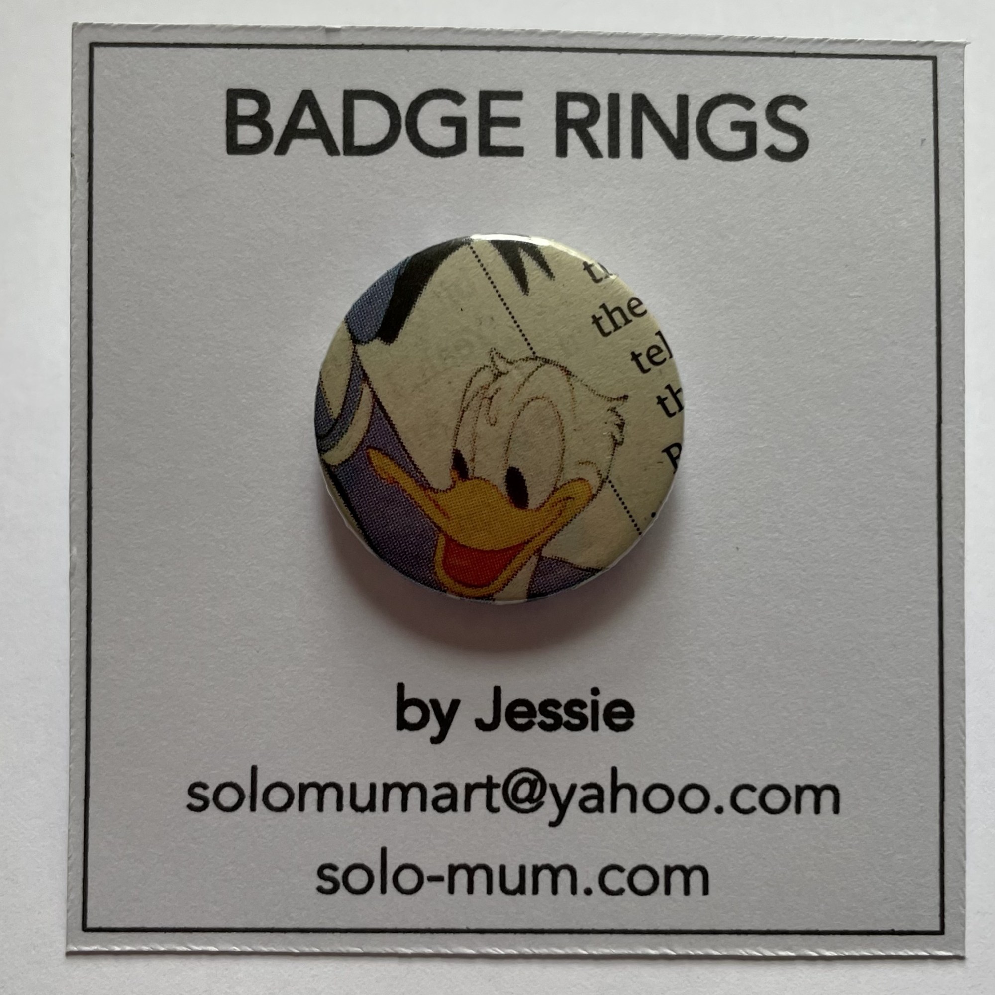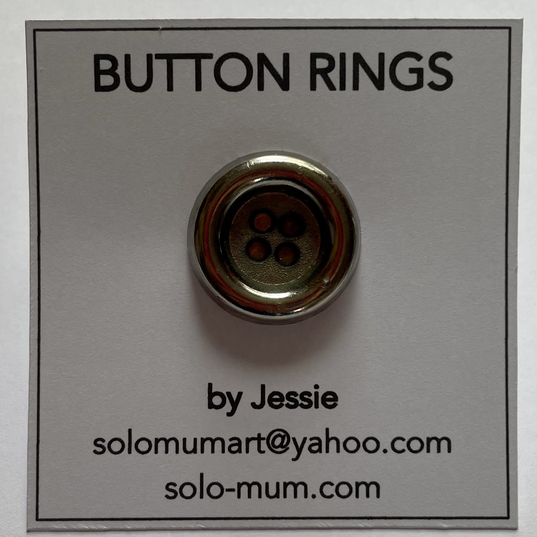 I have always loved buttons and badges and have collected them since I was a teenager. Please take a look and get in touch if you would like to purchase an adjustable button or badge ring. They are £5 including p&p. Here are some examples: